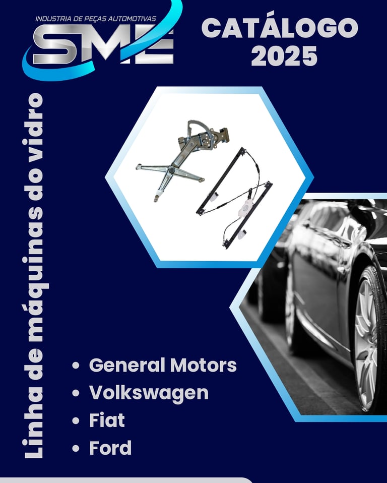A SME Industria de peças automotivas, conta com sua própria linha de maquinas de elevação de vidro automotivo, mas além de sua própria linha de produtos, a SME produz peças de acordo com as mais exigentes especificações técnicas do mercado.